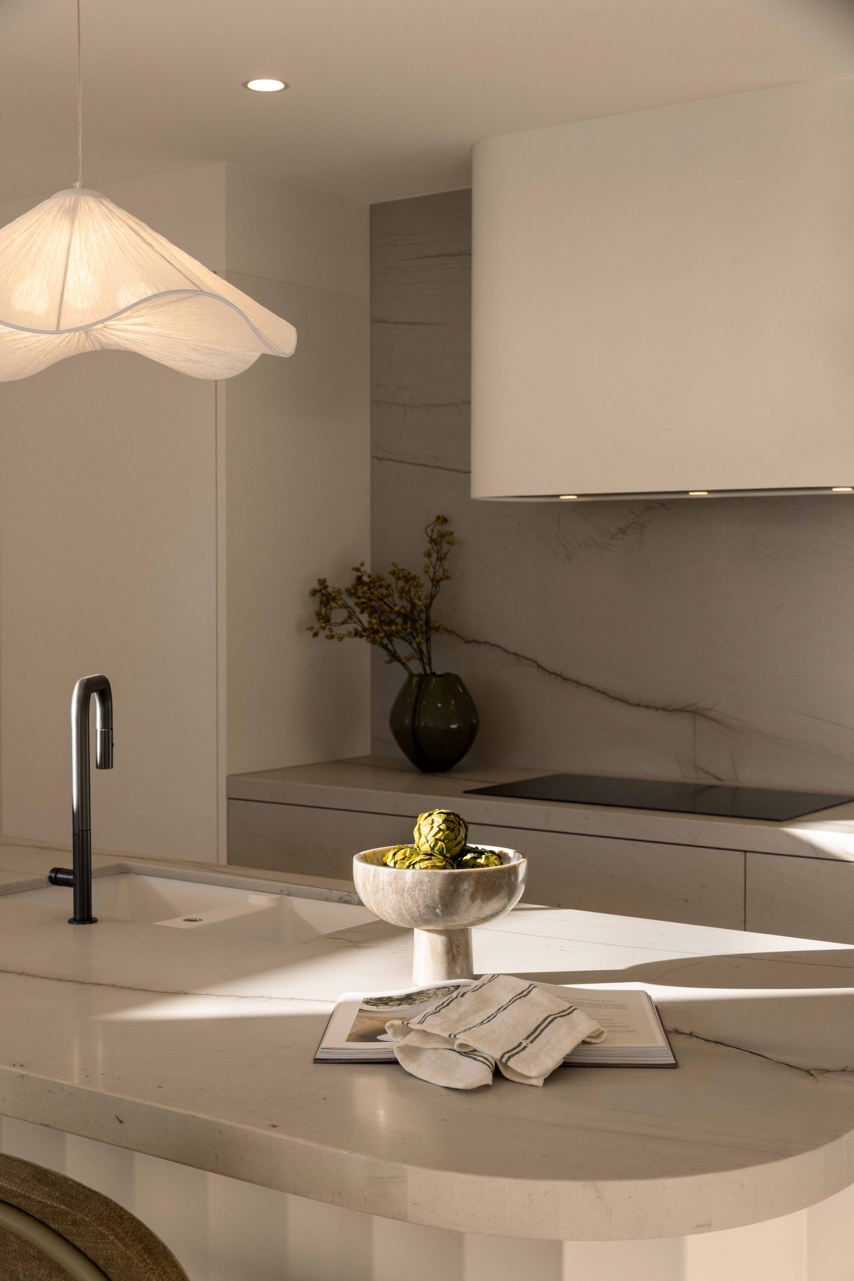 Бразильский кварцит Мон Блан это один из самых лаконичных и универсальных кварцитов на нашем складе. Его холодный бледно-бежевый оттенок и редкий коричневатый рисунок позволяют вписывать его в самые разные интерьеры, от кухонь и столовых до гостиных и санузлов. Несмотря на светлый оттенок, этот камень все равно очень практичен, как и любой другой кварцит. Никакие царапины или пятна ему не страшны.
