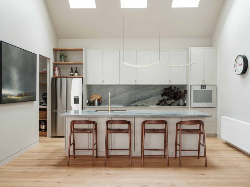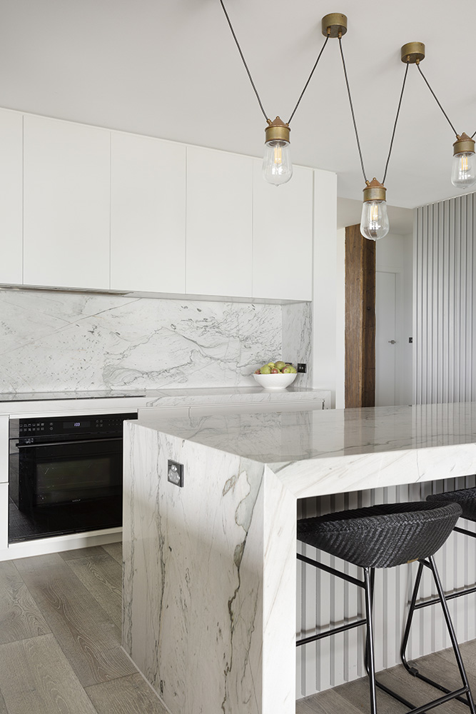 Даже самый светлый кварцит все равно отличается уникальным рисунком. Если вам нравятся элегантные интерьеры с белым мрамором, но вы ищете что-то более оригинальное и редкое, то кварцит это то, что вам нужно.