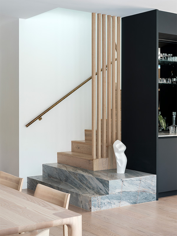 Детали из кварцитов сложных оттенков можно использовать как pop of color в лаконичных интерьерах, чтобы придать им индивидуальность и характер.